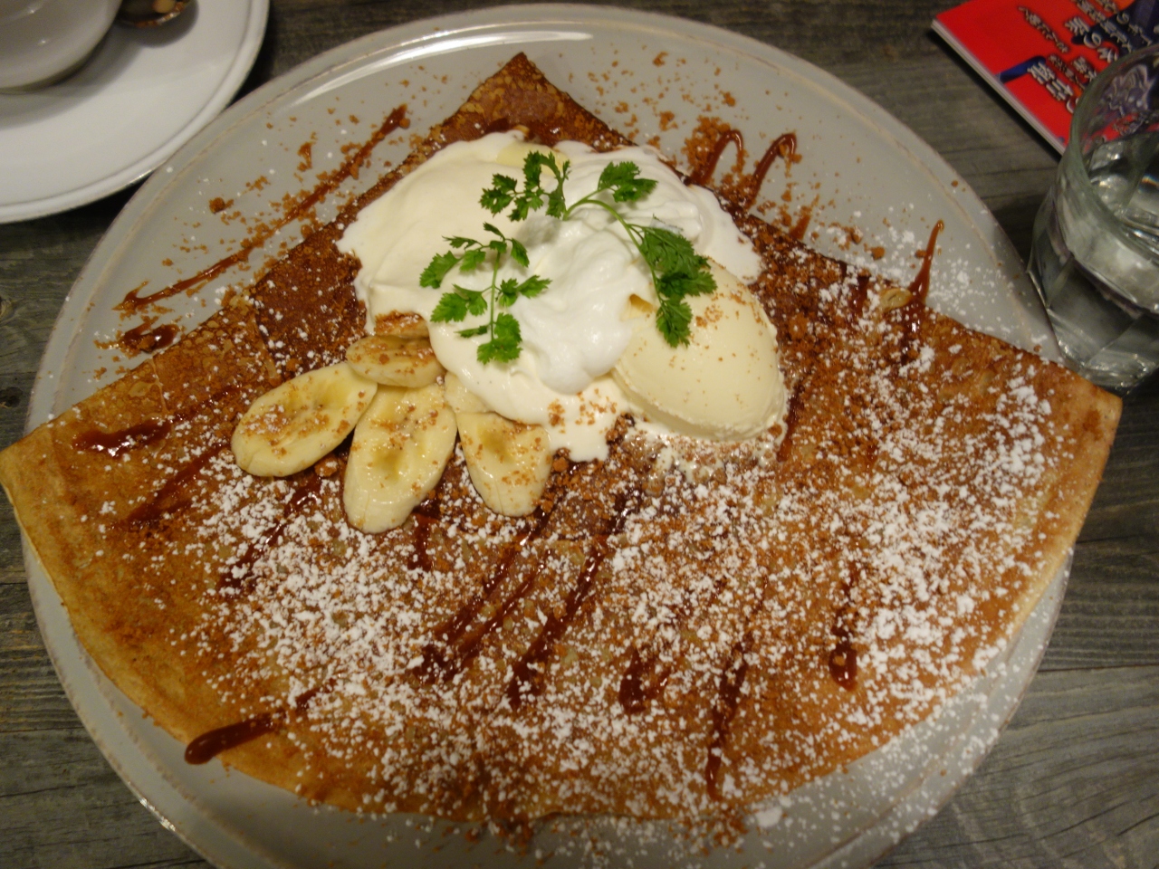京都にもおいしいクレープ屋さんがあります。ここがその例です。クレープとガレットがおいしくいただけます。お値段もリーズナブル。すてきな雰囲気のお店です。夷川通りですので,市中の喧騒とはちょっと離れています。落ち着いてクレープやガレットをいただきたい人はぜひどうぞ。