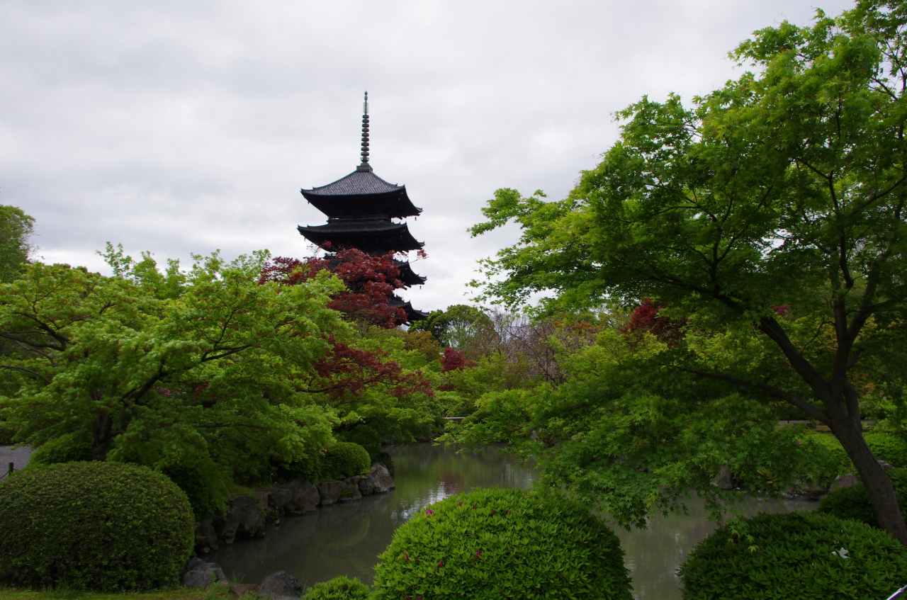 新幹線から京都駅に入る直前、そびえているのが見えるこの五重塔。