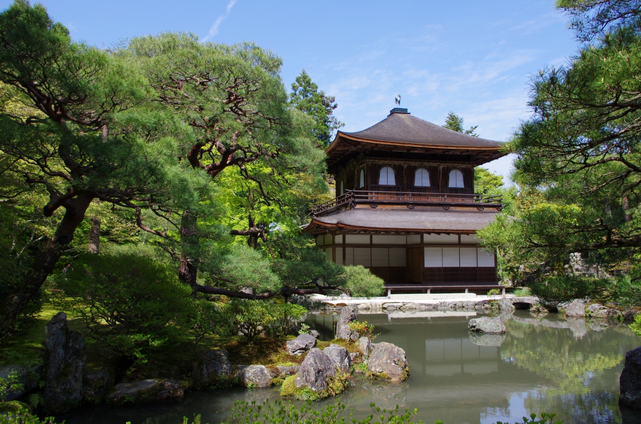 室町幕府第8代将軍足利義政が、第3代将軍義満の金閣寺を手本に建てたとされる。