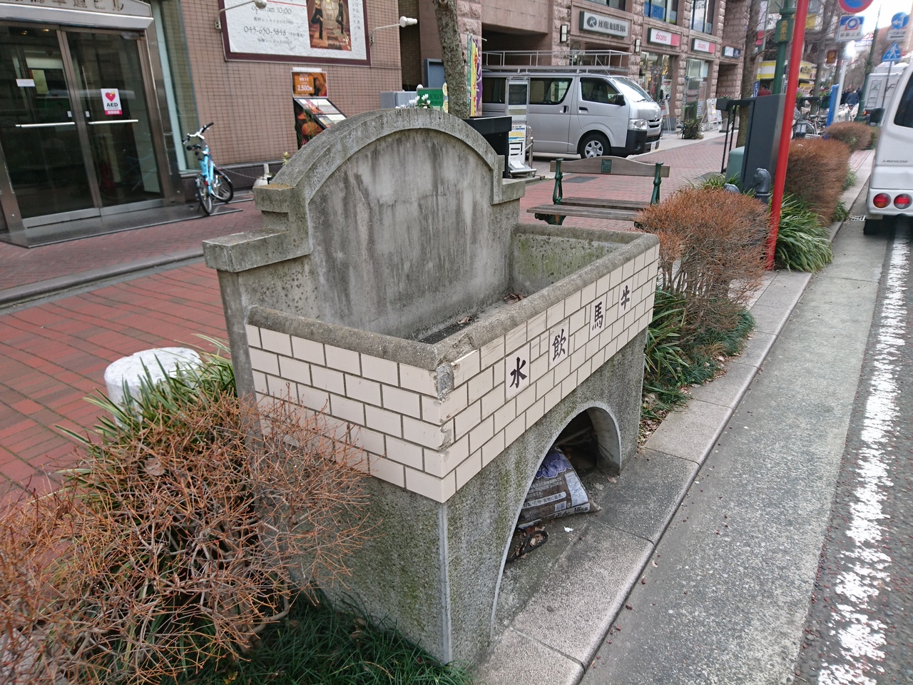 田舎でもなかなか見かけないものが、こんな都市部にあるのもへんな感じですが、周りのレトロな西洋建築があってのものなのかもしれません。横浜にはここ以外にもう1ヶ所牛馬飲水があるようなので、今度探してみたいと思います。