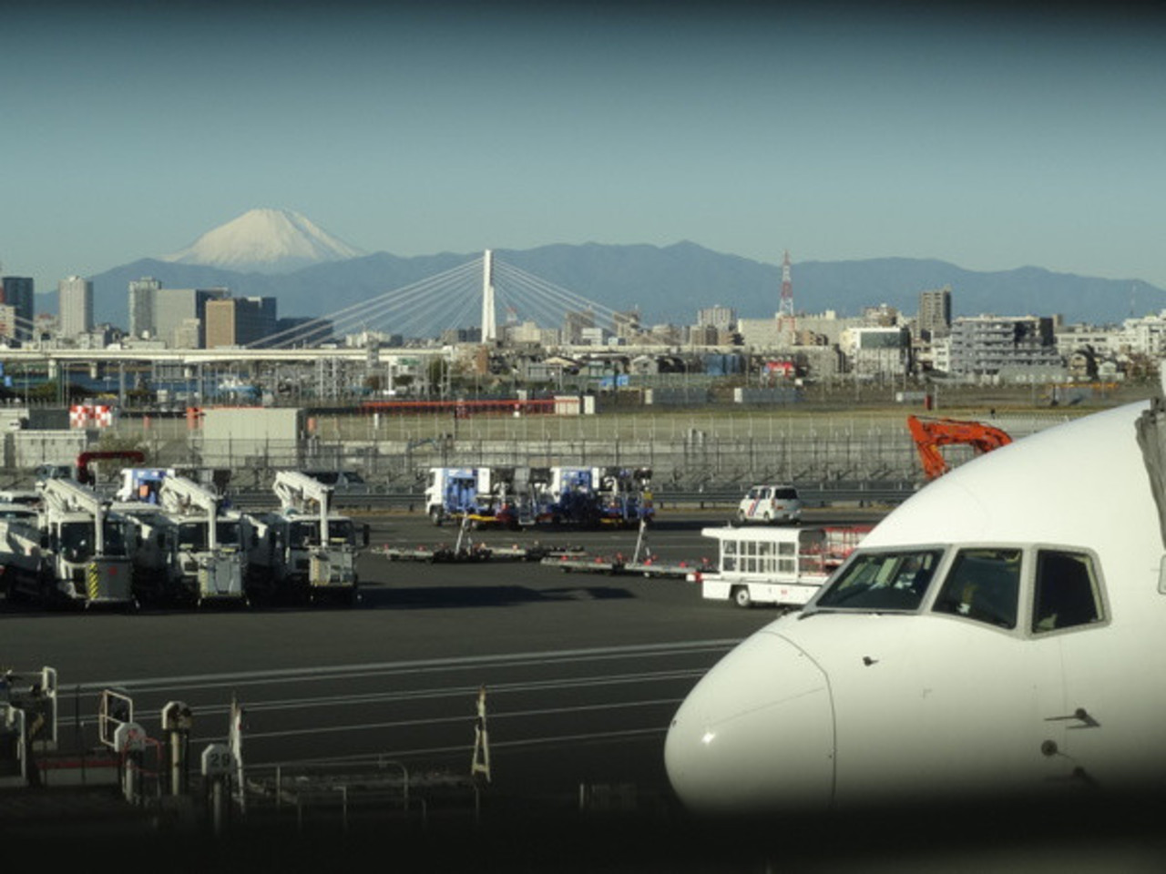 同乗者がJALグローバルクラブのメンバーだったので、ラウンジを利用しました。あまり時間がなかったので、サッとお味噌汁、サラダ、ご飯を頂きました。富士山が見えていてかなり驚きました。雪化粧が美しい季節です。