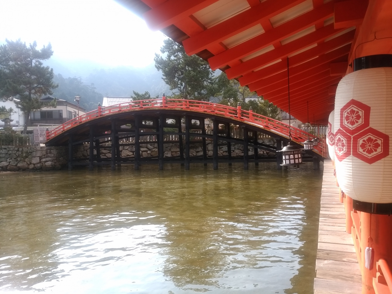 厳島神社西側廻廊に造営されていますが、現在は使用されていません。古来調停からの使者である「勅使」だけが通ることを許されたので、別名「勅使橋」とも呼ばれています。参拝した後、大巌寺から商店街方向に行くと、道路からも見ることが出来ます。何気なしにに参拝したり、通行していると見逃すことがあるので、案内図をよく確認することをお勧めします。