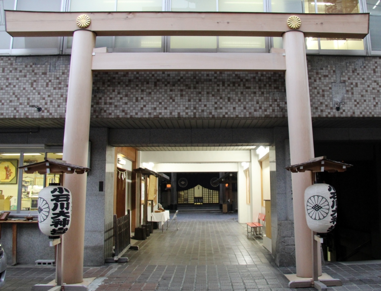 事前に文京シビックセンター展望台から小石川大神宮を探したが見つからなかったので変だなと思っていましたが、現地に行って納得しました。ビルの狭間に埋もれた感じで神宮のイメージとはかけ離れた空間でした。ビルの真ん前にある鳥居に衝撃を受けました。これでは、展望台から見てもわからないはずです。