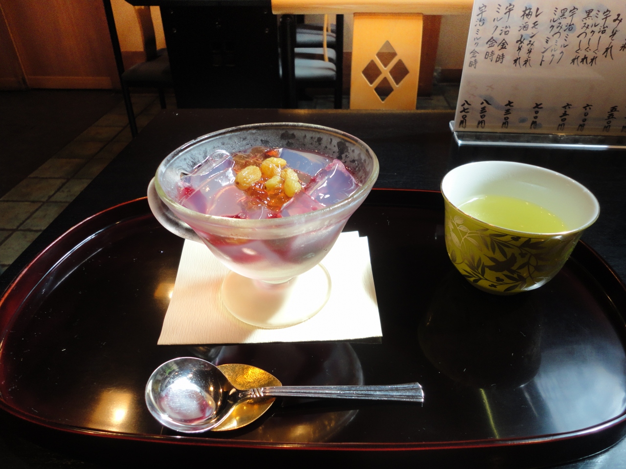 名物の琥珀流しは、トゥルン♪とした寒天に蜜とトッピング。