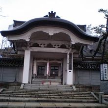 ニ十間坂沿いに威風堂々と建つ寺院で、日本初の鉄筋コンクリート寺院として知られています。