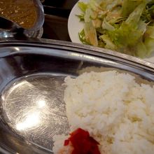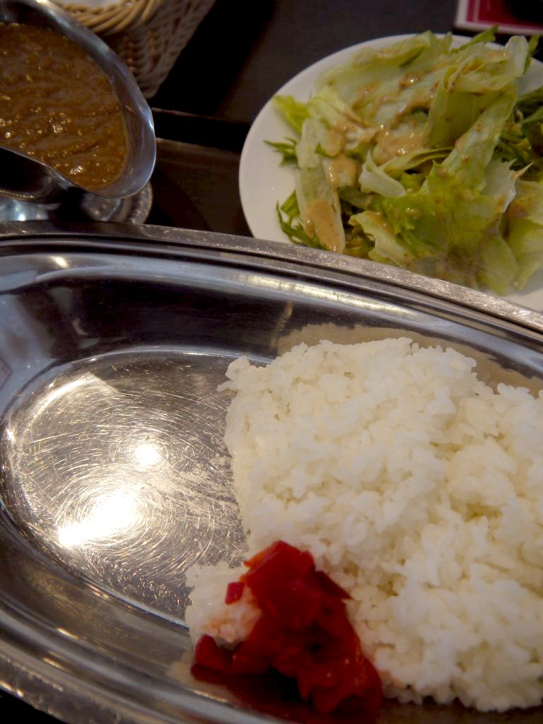 濃厚な、とろとろタイプのビーフカレー。辛さはあまり感じられないが、スパイスの香りは充分以上に活かされている。
