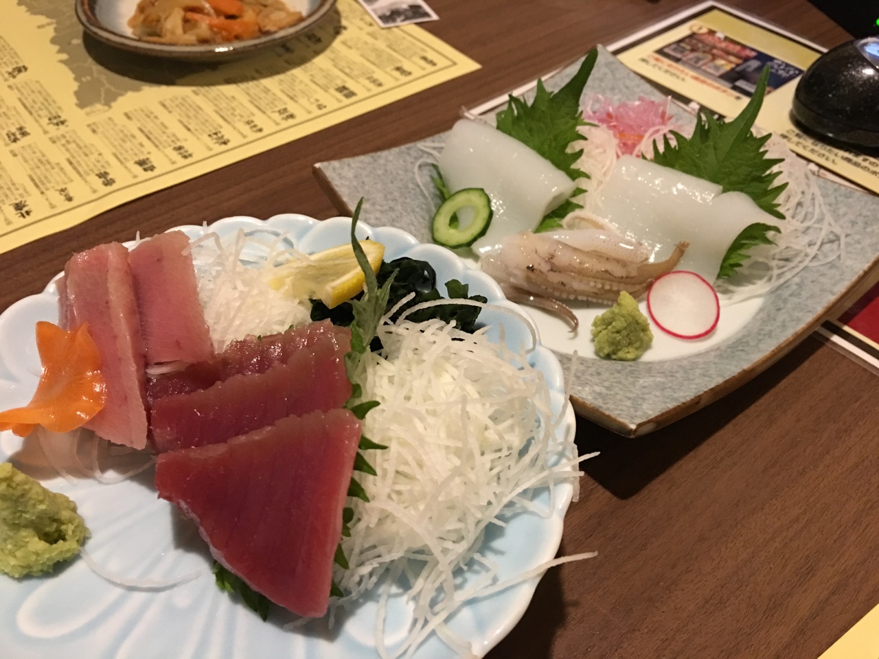 飲み放題(1,500円)にしてもらい、刺身や横手やきそばを食べました。お通しがチゲ鍋というのも斬新。お題は一人三千円弱で、安価に酔っ払えました。大満足です。
