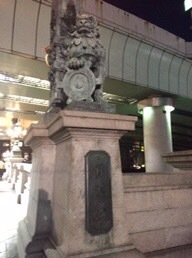 10年程前に通りかかった時はなんとも思わなかったのですが、今回は夜だったせいか恰好よく見えました。暗いのが逆に良かったのかもしれません。この橋の中央には道路元標があると同行者が教えてくれたのですが、道路の真ん中に出て行くわけにもいかず確認はできませんでした。