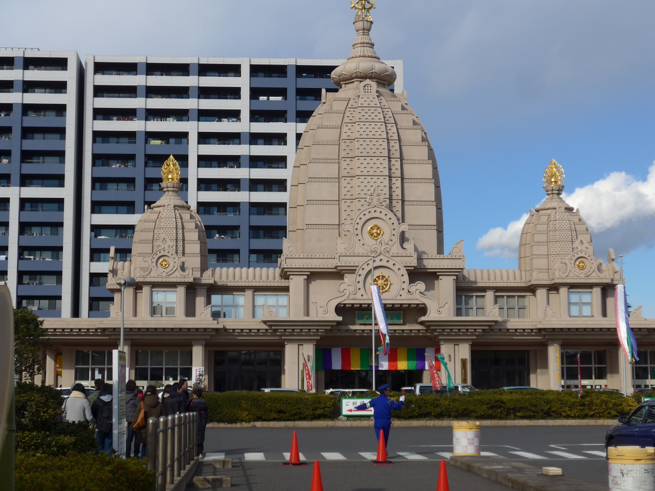 大鳥居から大師大橋を渡る際に大きな東南アジアによくある寺院のような建物が見え