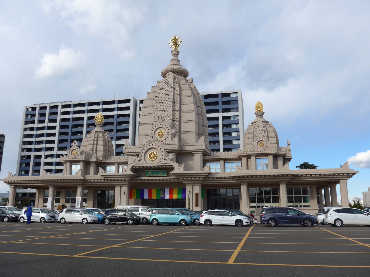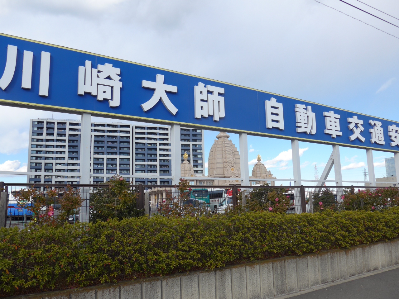気になって歩いていたら川崎大師の近くの駐車場となっている敷地内に大きな看板で「川崎大師自動車安全祈祷殿」と書かれていてこの建物のが何であるかを知りました。