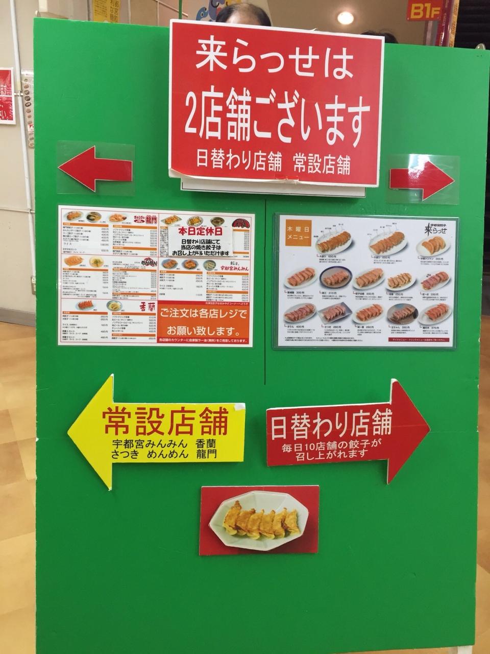 宇都宮と言えば餃子。有名店はいくつもあるけど、今回は色々集まってる「来らっせ本店」に行って来ました。平日のお昼前、全然混んでいませんでした。フードコート的な感じで、注文方法は、それぞれのお店に行って注文し、テーブルNoを言うと出来上がったらお店の人が席まで持って来てくれるというシステムです。龍門の明太チーズ餃子、みんみんの焼き餃子、香蘭の焼き餃子、そしてめんめんのゆで餃子を食べました。どれも美味しかったので満足しました。
