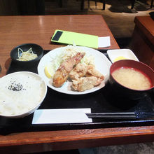 小鉢とサラダもついていて、さらにご飯と味噌汁はおかわり出来ましたので