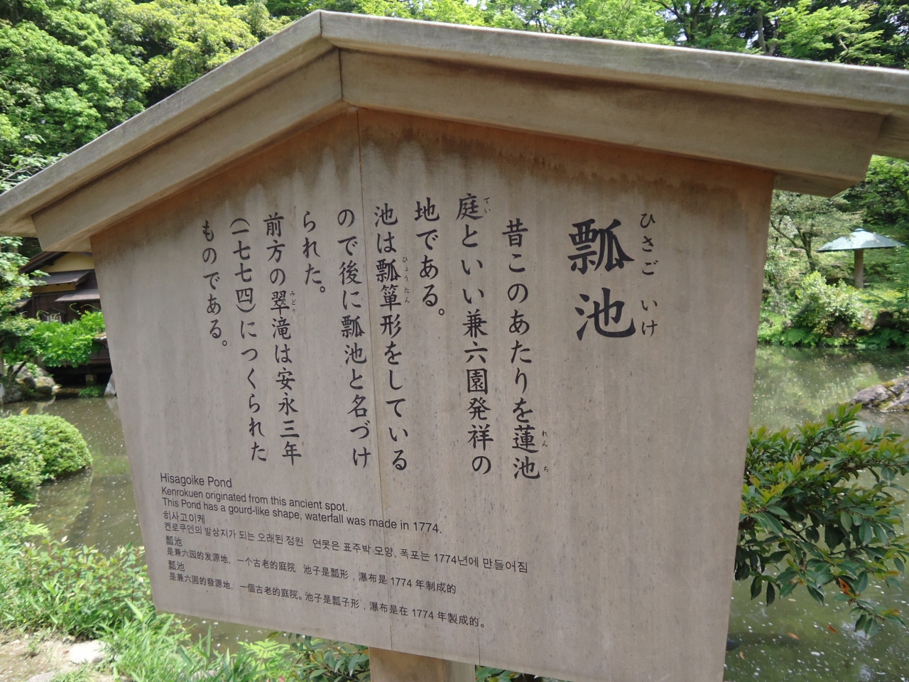 蓮池門から入ると最初に見えてくるのが瓢池です。池の中ほどがくびれていてひょうたんの形に似ているからこの名がついたとか。兼六園で2番目に大きな池ですが、このあたりが一番最初に作られて古いそうで歴史を感じました。こあたりは人もあまり多くなかったです。