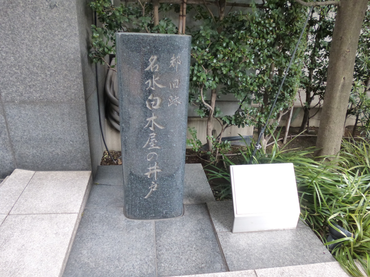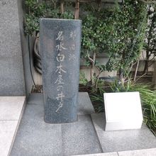 コレド日本橋の間の道を入っていくと、ベンチが置いてある、広めのスペースがあります。休憩時間の会社員や、買い物客が休憩に使っています。その広場の、片隅に、漱石名作の舞台の碑と並んで、この碑が建てられています。現在は、井戸の跡などもなく、石碑が建てられているのみです。