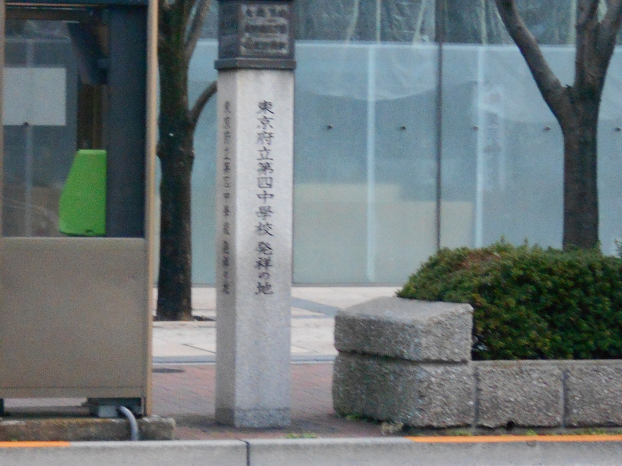 こちらの「東京府立第四中学校発祥の地」は、現在の「東京都立戸山高校」の前身となる中学校が明治期に「皇典講究所」内に開設された歴史が標柱のサイドに説明されていました。