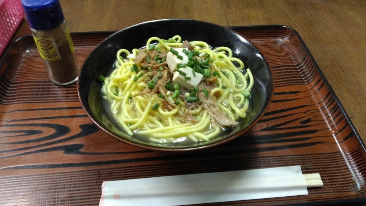 外観は不思議なメッセージがいっぱいで、あやしさ満載だが、入ってみれば普通の沖縄そばとヤギ汁の店。マスターの個性がかなり強く、外国人客を歓迎していて、口コミで外国人がヤギ汁を食べにくるようだ。八重山そば500円を食べたが、値段相応にソーキの量は少なかった。やはりヤギ汁にすべきてあったか。