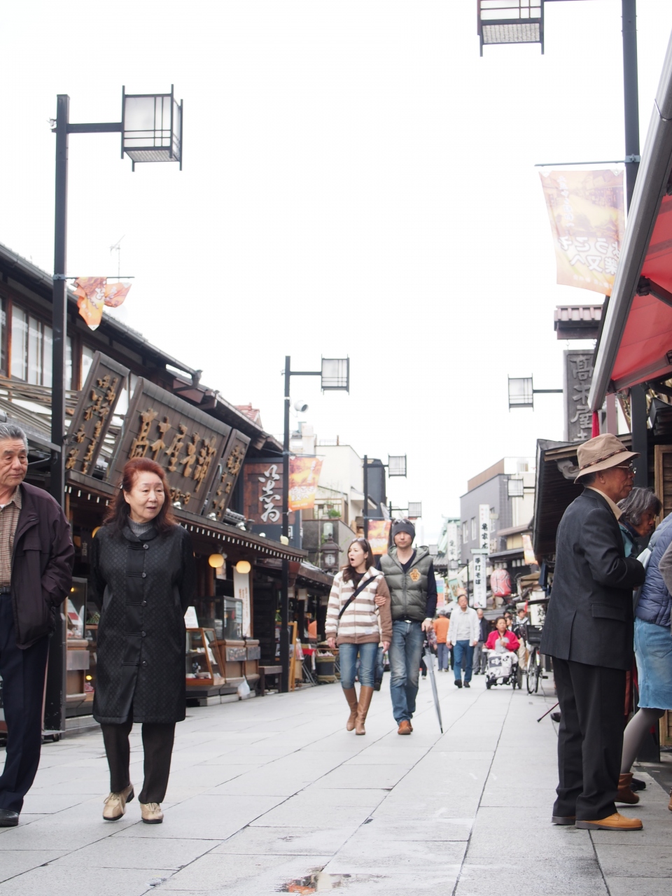 柴又駅から帝釈天までの全長450メートルほどの参道。綺麗に舗装されていますが、どこも歴史がある店のようです。食べもの系の店が多く、だんご、せんべい、どら焼き、こんにゃく、芋ようかんなど食べ歩きにぴったり。土曜日でしたが、程よい混み具合で食べ歩きしながらゆっくり歩きたい参道です。