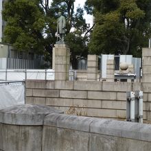 「渋沢栄一銅像」は、常盤橋のたもとにある常盤橋公園の一画に設置されていますが、残念ながら公園が工事中で、白いフェンスで囲われていました。よって正面からは全体像を見る事は出来ずに、横に回り込んで見るしかありませんでした。大手町から日本橋にかけてはあちらこちらで工事が行われており、仕方がない事とは思いつつも、歴史や風情を充分に感じる事が出来ないのは残念な思いです。