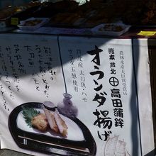 店頭にはオランダ揚げとの商品があり店員の方のお薦めで購入しました。揚げ物ですが中身はすり身です。サクッとした触感とプリッとした歯ごたえで珍しく美味しくいただきました。