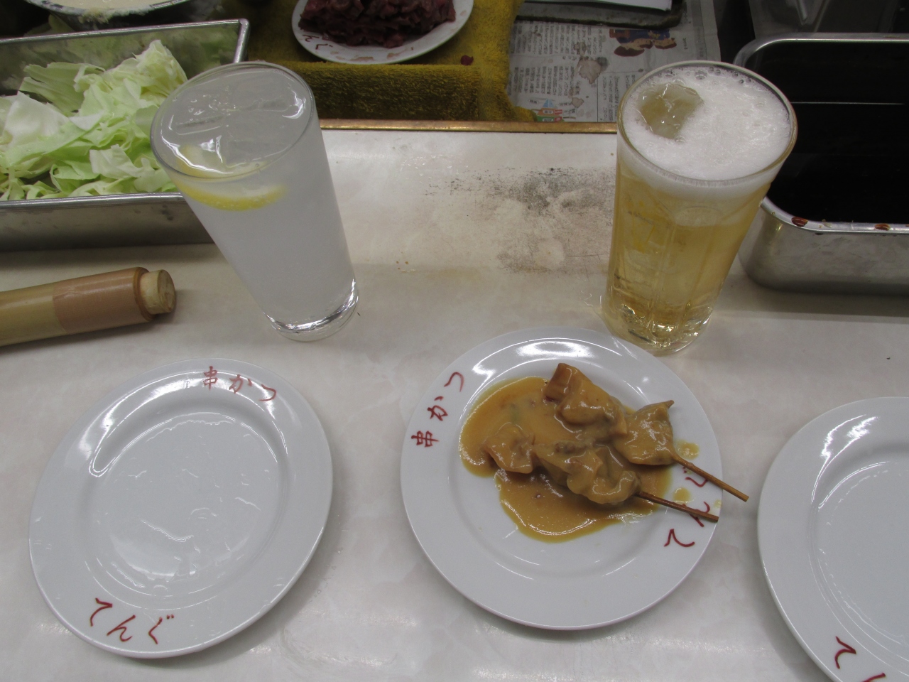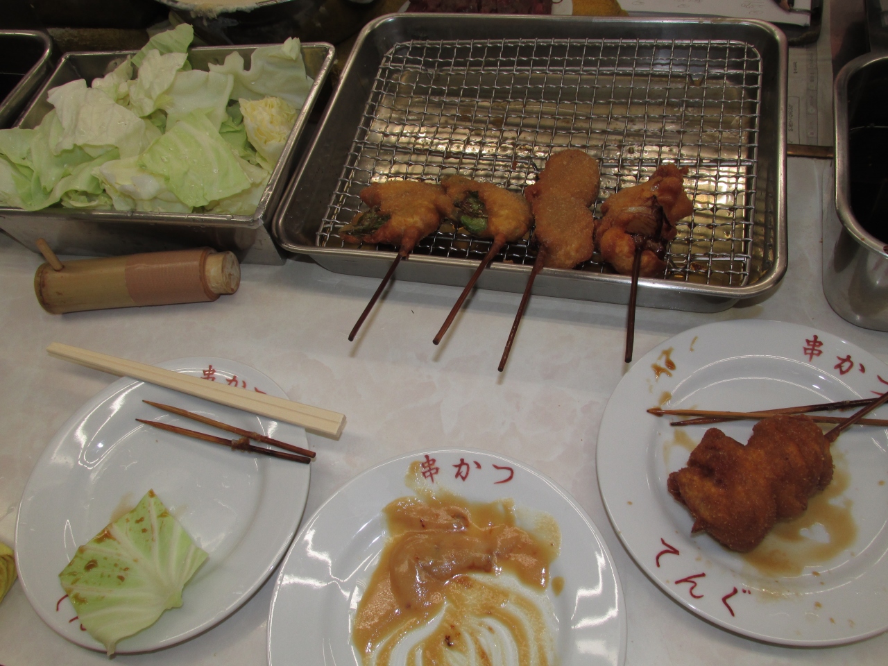 大阪名物の串カツを食べに新世界に行ってきました。数ある串カツ屋さんでここを選んだのは、ただ、すぐに座れたから。カウンターのみのお店です。目の前で揚げてくれます。メニューに「豚カツ」というのがあったので、串カツと豚カツはどう違うんですか?と、尋ねたところ、関東では串カツは豚だけど、大阪は牛なんですよと。へえ~知らなかった~!