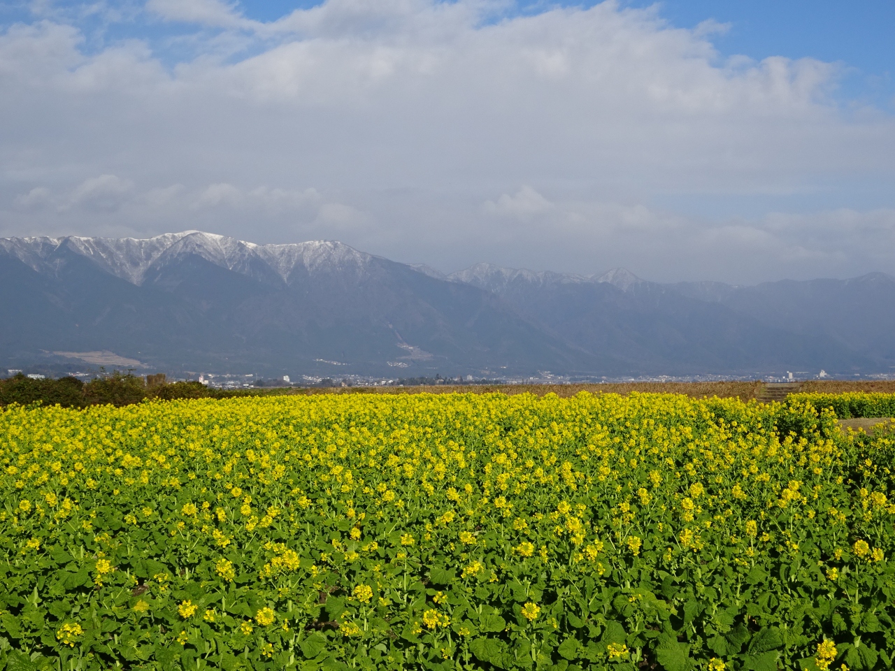 見事な菜の花を楽しむことができます。面積はさほど広くはありませんが、一面に咲き誇る菜の花と琵琶湖の対岸に見える雪化粧した比良山系のコントラストはとても美しかったです。