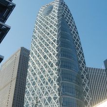 新宿駅西口から西新宿の高層ビル群に向かう地下通路を進むと比較的駅に近い場所の右側にこちらのビルがあります。地上を行くと駅前広場に面したスバルビルのすぐ隣にあります。その外観は極めてデザイン的で東京モード学園のタワービルらしいです。そのデザインは北京オリンピックの時のメインスタジアムの鳥の巣と言われた競技場に似ているかなと思います。実際のビルとしては3つの専門学校が入っているのと、カフェとブックショップがあります。