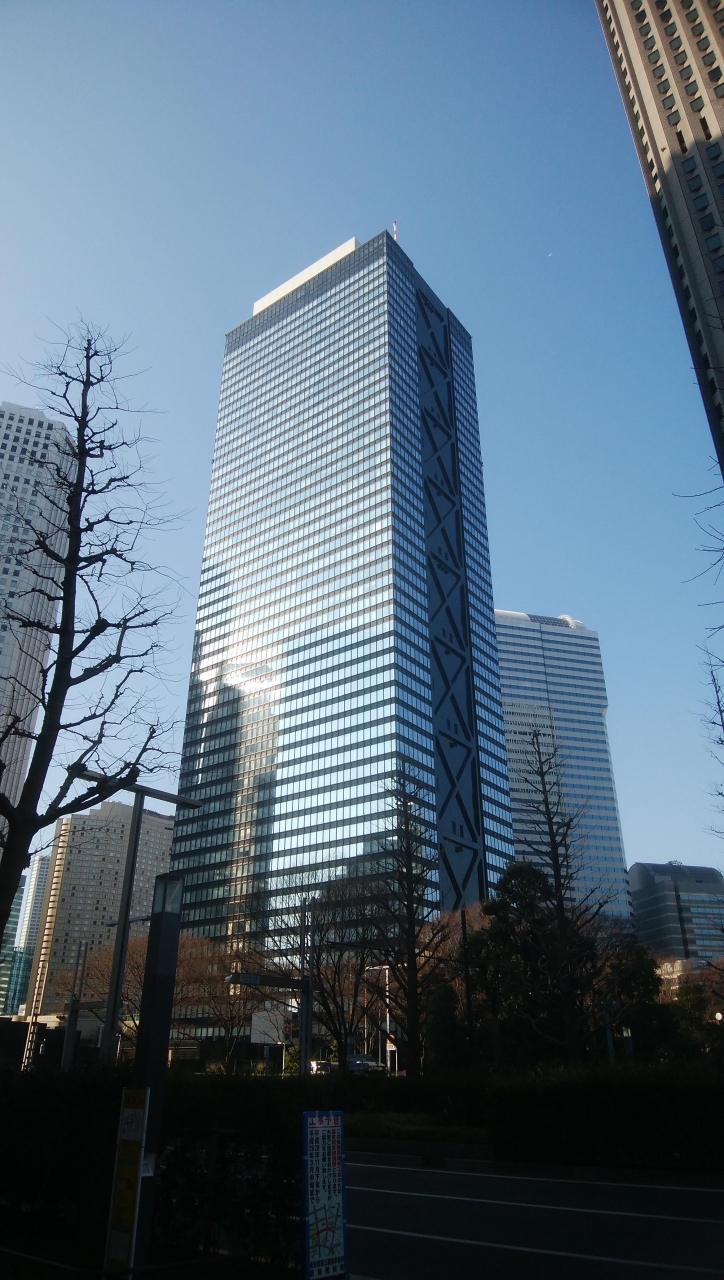 西新宿の超高層ビル群に一画にあって、東京都庁のすぐ横になります。新宿駅からだと地下通路を通って徒歩7分ぐらい、それよりも大江戸線の都庁前駅であればすぐ横になりますし、丸ノ内線の西新宿からも徒歩2分ぐらいの場所になります。1974年に開業したビルで西新宿の超高層ビルの中では比較的初期に建ったビルです。壁面がカーテンウォールになっており、ガラス張りと黒のフレームの組み合わせで、超高層ビル群の映像というときは必ず、被写体にされているビルで目立っています。低層階と最上階にサービス施設というか店舗があります。最上階は三井倶楽部で三井グループの企業の会員制クラブで、一般者は低層階のレストランやサービス施設、クリニックなどは利用できます。