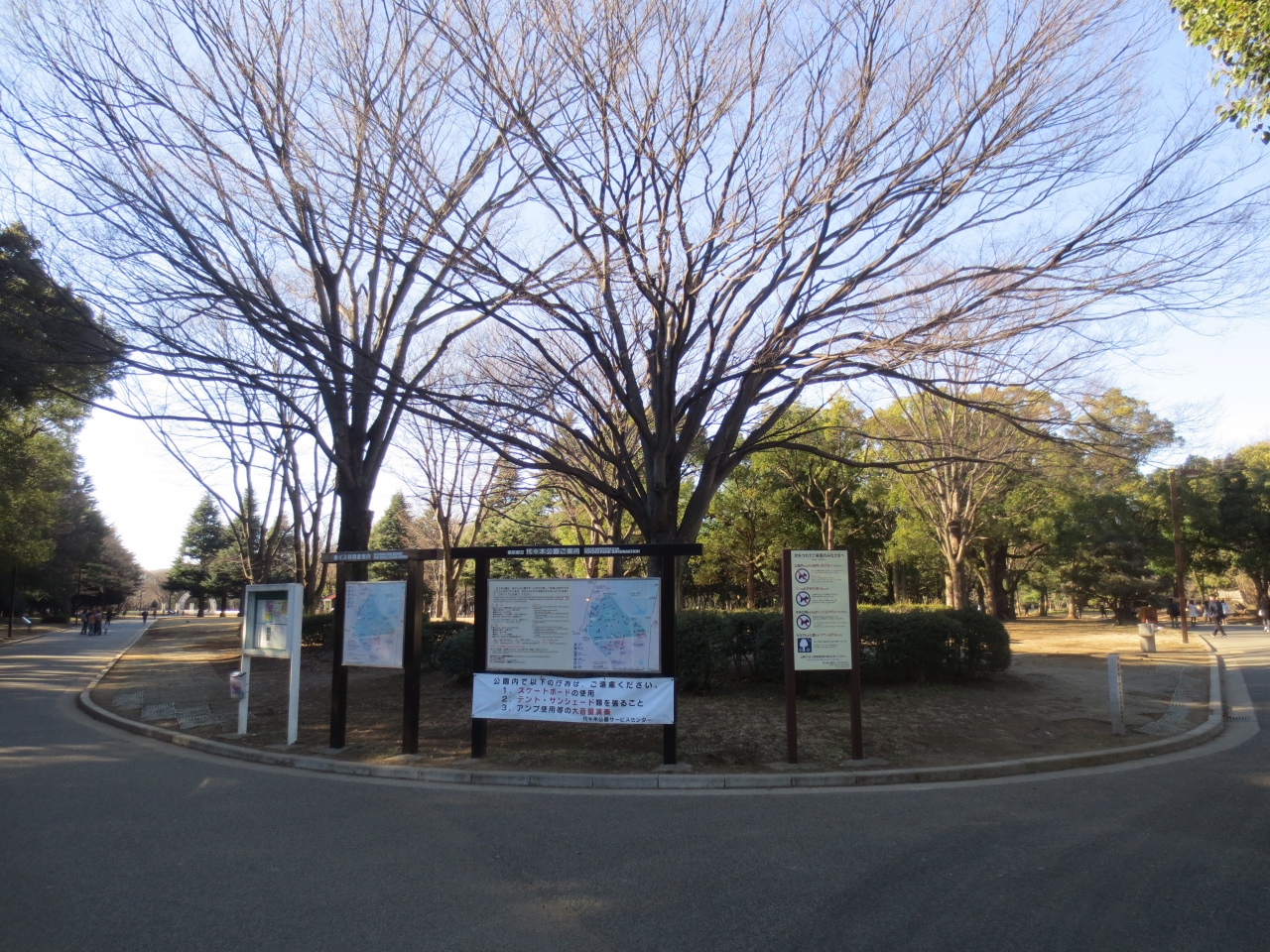 原宿駅からすぐ、明治神宮に隣接した広大な公園です。昭和39年の東京オリンピック開催時は選手村として使用された場所で、その後に公園として整備されました。中央広場を中心に池が配置されたりと、都民の憩いの場として利用されています。冬のこの時季は、園内で日向ぼっことはいきませんが、意外に人が多かったのが印象的でした。