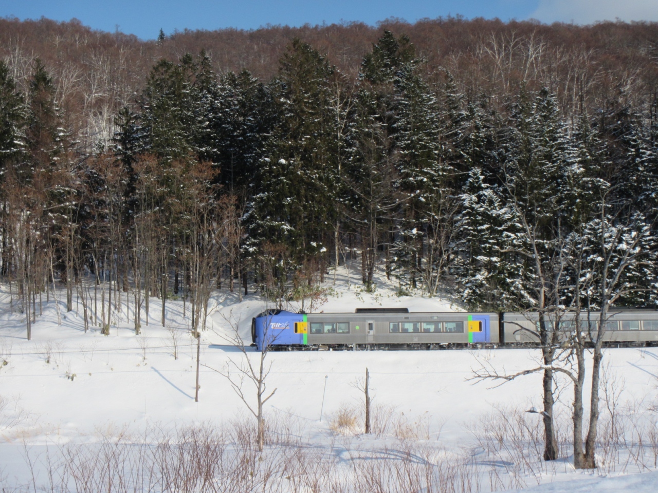 特急列車でも、音威子府-佐久のあたりは、山間の川沿いをうねるように進むので、スピードがでません。
