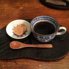 お店へ入るとカウンターはいっぱいだったのでテーブル席へ。席に着くとお店の方が「11時オープンなのでコーヒーしかお出しできませんがよろしいですか?」と・・・・時計を見たら10時半すぎ(+o+)駐車場に車が何台かあったので何も気にせず入ってしまいました。「ごゆっくりどうぞ」と笑顔でコーヒーを出していただきお言葉に甘えゆっくりさせていただきました。駐車場の車、カウンター席の方々は地元の方でした。観光客が来るオープン前にコーヒーをって感じですかね。会話を聞きながらほっこりしました。