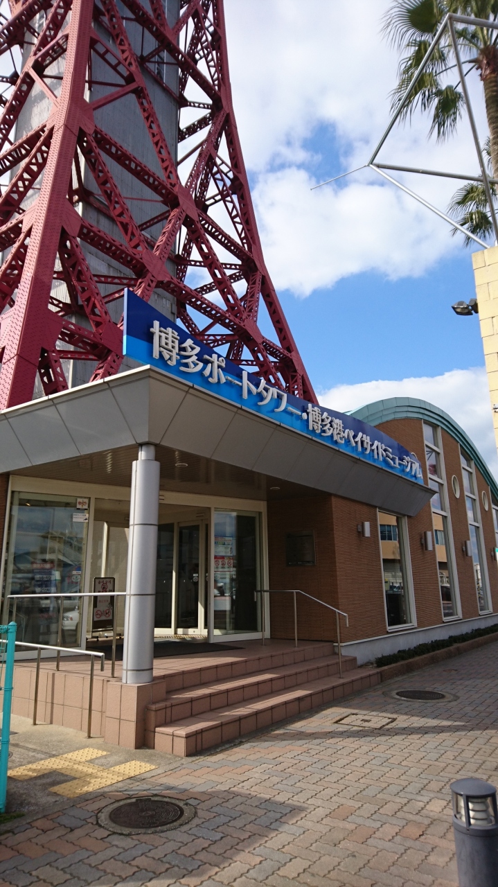 赤い鉄筋のタワーです、地上約70メートルぐらいだと思います。エレベーターで展望室からは博多湾、福岡市内を観る事が出来ます。なかなか、入場無料ってないと思いますよ。博多港のいろんな事が学べるミュージアムもあって楽しめる空間です。知ってましたか、昔ここにプールがあったって。