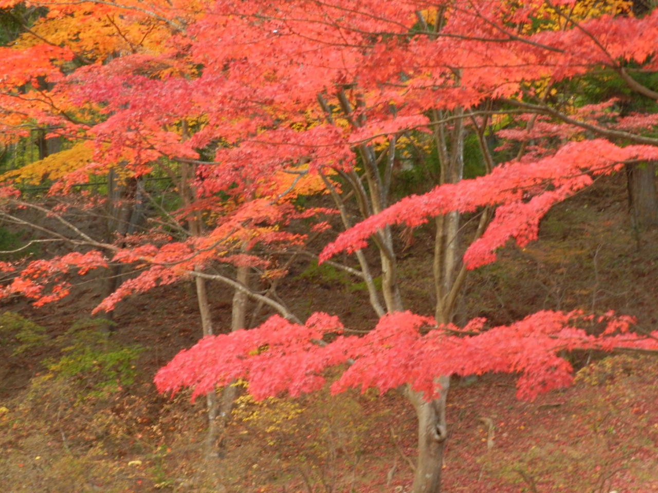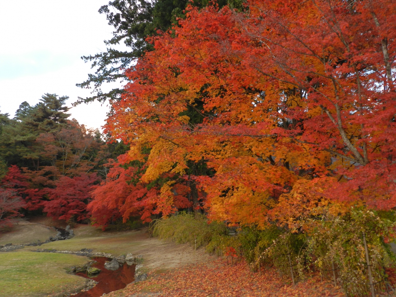 「大泉ヶ池」と呼ばれる広い池の周りが散策路になっていて、私が訪れた11月初旬には多くのモミジの木が色づいてとても美しかったです!♪