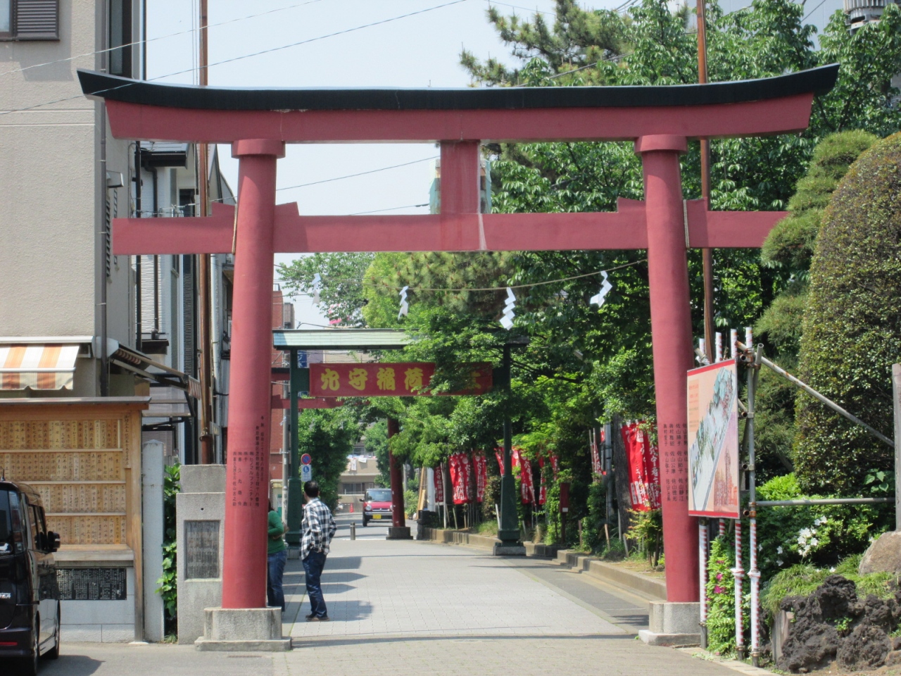 祭神は豊受姫命(とようけひめのみこと)で、ご利益は商売繁昌、家内安全、心願成就、病気平癒、交通安全、厄除、開運などです。