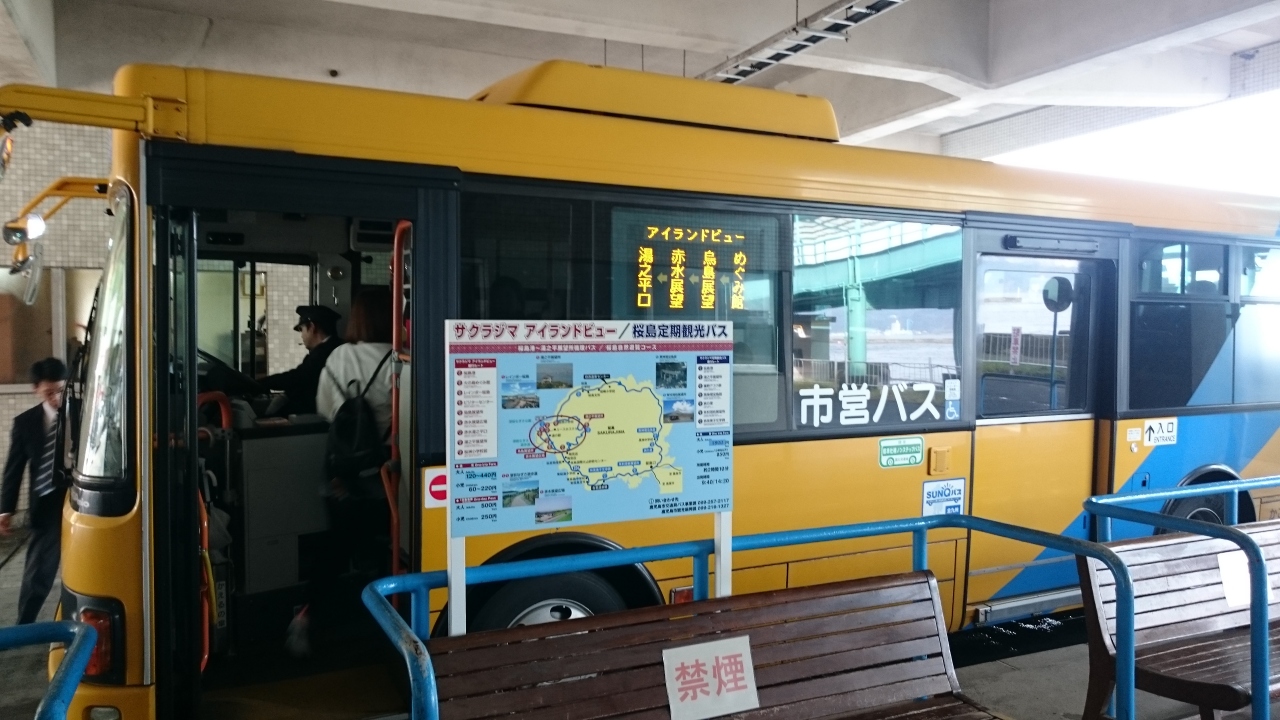 桜島観光で乗るなら座れないと1時間立ちっぱなしになるので、バスとフェリーの時間を予め確認したほうがいいと思います。