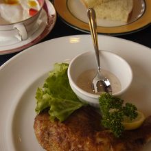 骨付き鶏のコンフィと超クリーミーポテト&とろたまサラダは、当店が提供するランチセットの1種。