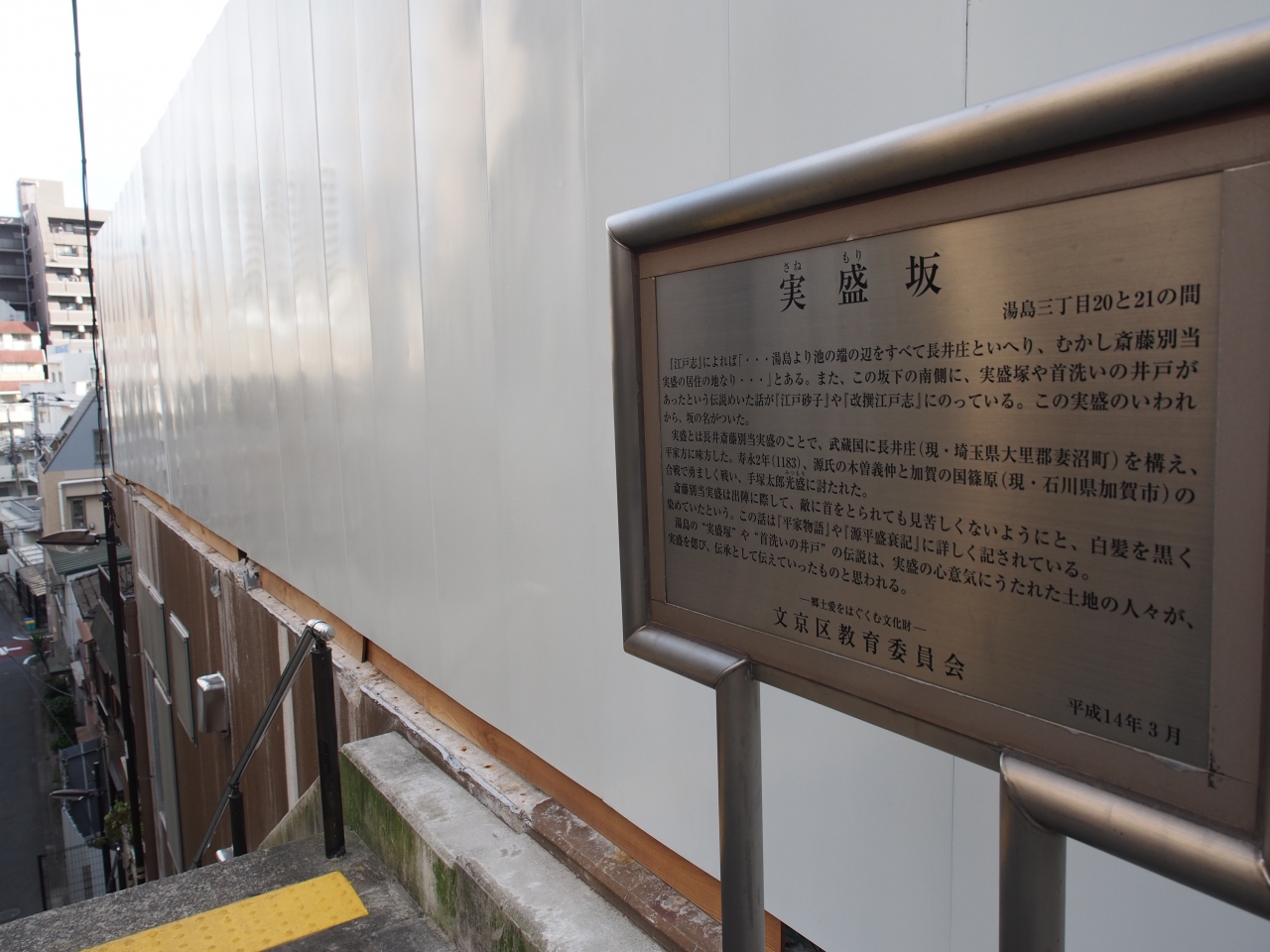 坂の名前は近くに住居のあった実盛という人物に由来するそうで、案内板が坂上にありました。