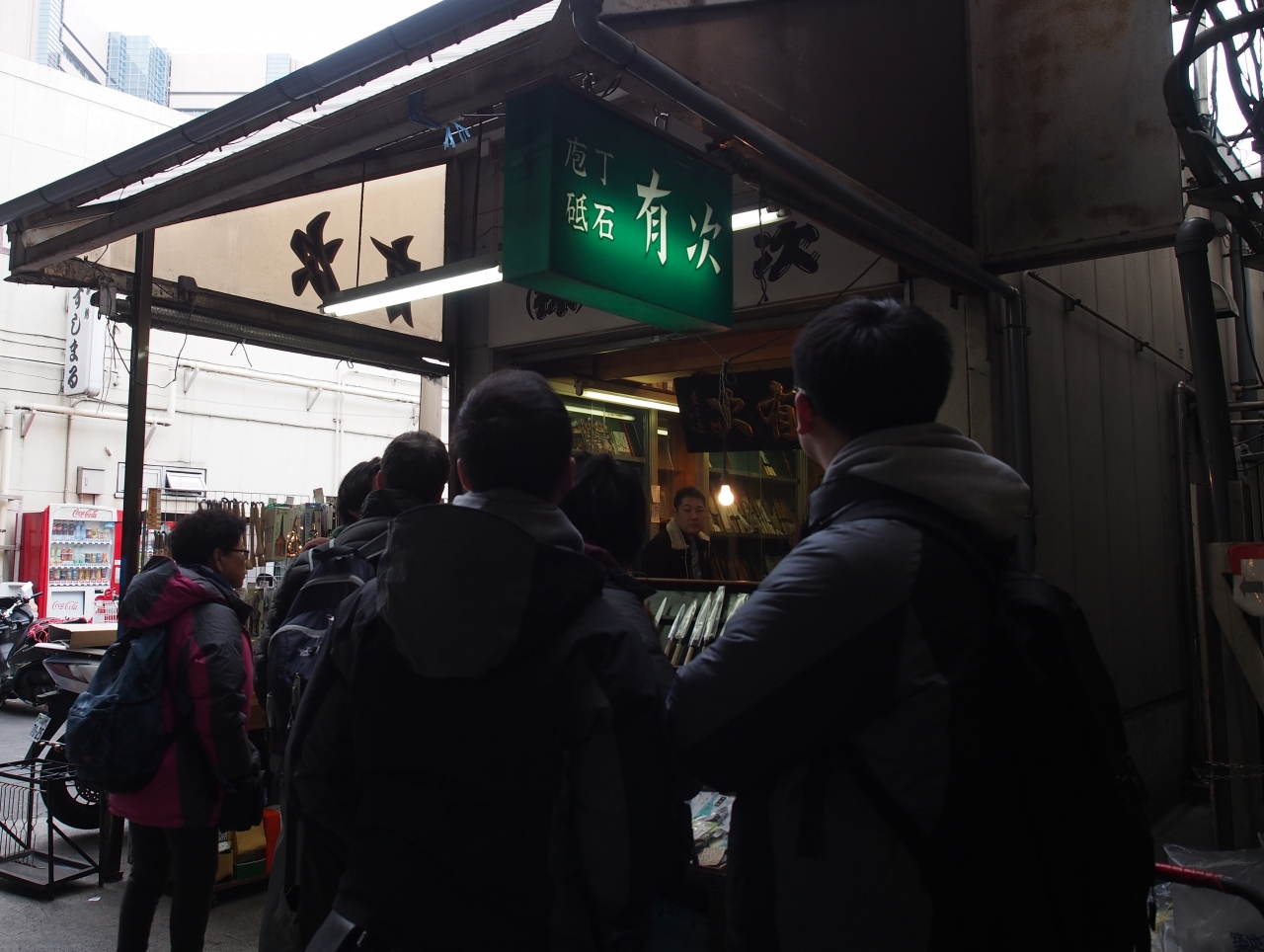お店自体は小さいですが、ずらりと店頭に包丁が並んでいるのは壮観です。包丁研ぎの実演もしていて、外国人観光客が群がっていました。