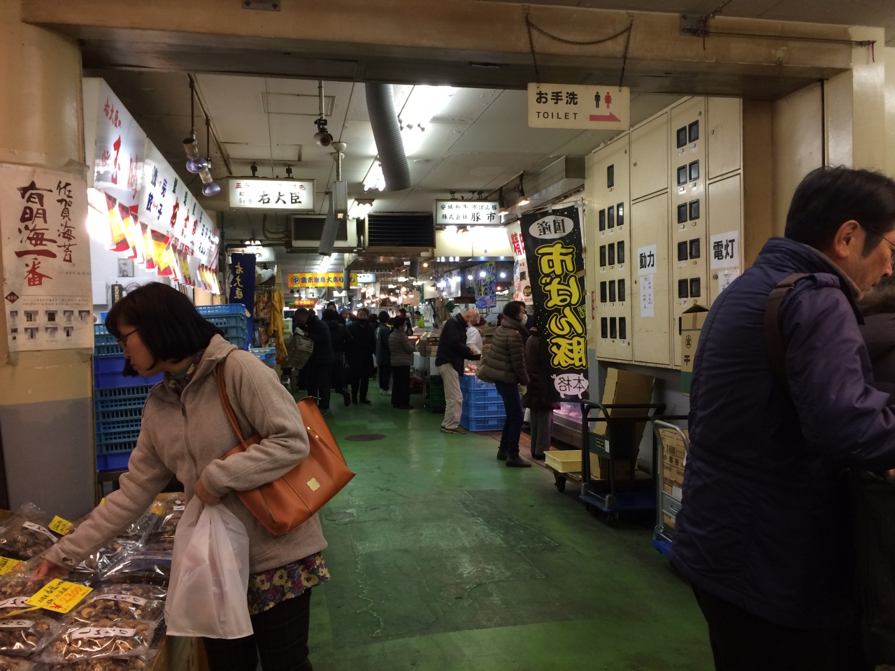 名古屋駅から徒歩5分の民間市場です。昨年末、年末年始の買物で初めて行きました。生のマグロの塊や牡蠣やサザエなど、生鮮品を中心に購入しました。値段はそれほど安いとは思いませんでしたが、新鮮で質の良いものが手に入ります。駐車所もあって、市場内の飲食店を利用すれば3時間500円です。