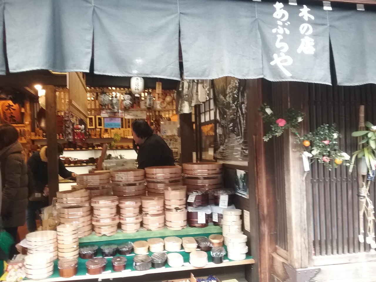 中山道、妻籠宿にある雑貨屋さんです。木でできた製品を売っています。ひのき、桜で出来たスプーンやお弁当箱、お店に入ると木の香りに包まれてマイナスイオンいっぱいです。店員の女性が親切で、干し柿を持ってく?とすすめてくれたり、ちょこっと値引きもしてくれました。なぜか、漢方の胃薬までいただきました。どうして私が飲みすぎで胃が荒れてるってわかったのんでしょ? 笑