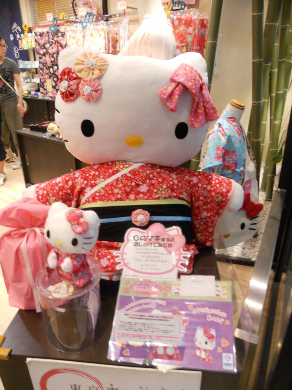 「東京ソラマチ」のウエストヤードの1階、「東武スカイツリータウン」の駅からもすぐなので、まさに外国人観光客を意識した印象ですが、着物を着たキティちゃんなど珍しいぬいぐるみや雑貨が揃っているので、まさに下町ならではのキャラクターショップ☆