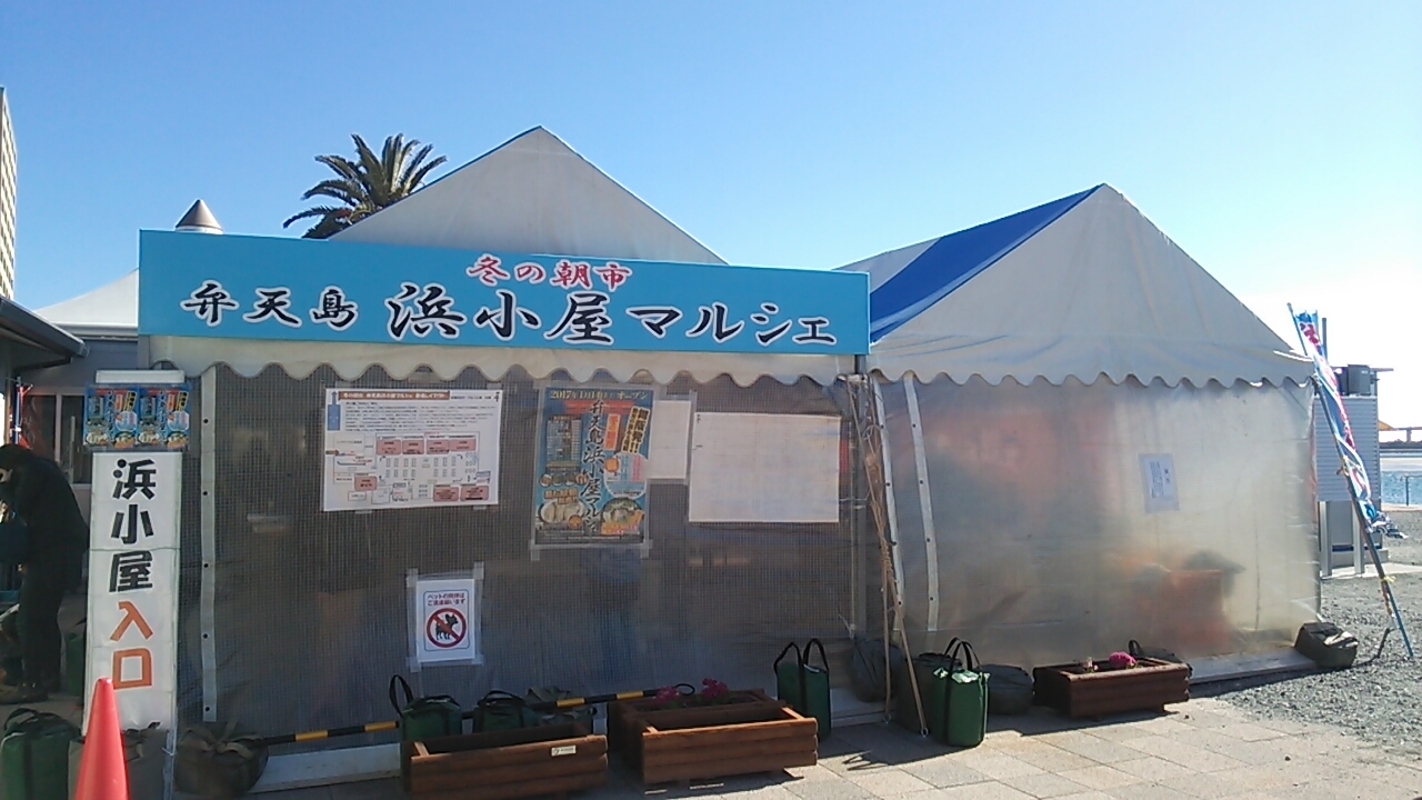 2017年1月28日の土曜日に訪れたところ、「弁天島浜小屋マルシェ」なる食のイベントが開催されていました。