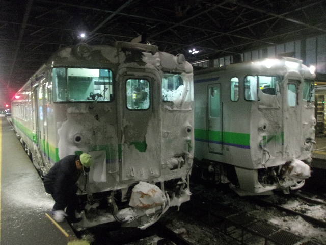 私は地元の人間ですので、日常的に利用している乗り物なので、大体どの時間帯の列車に乗ればどこまでが混雑しているのか、といったような大まかな状況は把握しています。実は宗谷本線の下り旭川~名寄間は、北海道内では札幌圏を除いては比較的乗降客が多い区間と言えますが、旭川終発の名寄行(現行スケジュールで22時3分発)は、流石に遠方駅への到着時間が遅くなる関係で、旭川市内の駅までの利用、特に永山駅で殆ど下車、そして続く比布駅で車内の8割方はいなくなってしまいます。従って、その後の車内は空いていて快適に過ごせますので、到着が遅くなっても良いという、士別・名寄方面への利用をお考えの方は、終発列車が非常にお勧めす。(因みに1本早い便(20時40分発)だとかなり混雑します。)