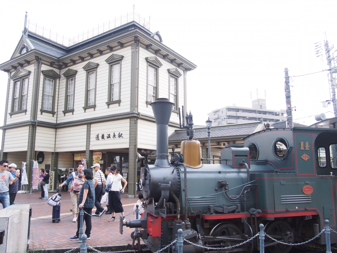 街中を走ってるのをみるとちょっとラッキーな気分に。運転していない時は道後温泉駅に停車してるので、写真を撮る場合はここで撮るのがオススメです。坊ちゃん列車が来ると人が集まってきて写真撮影大会が始まります(笑)