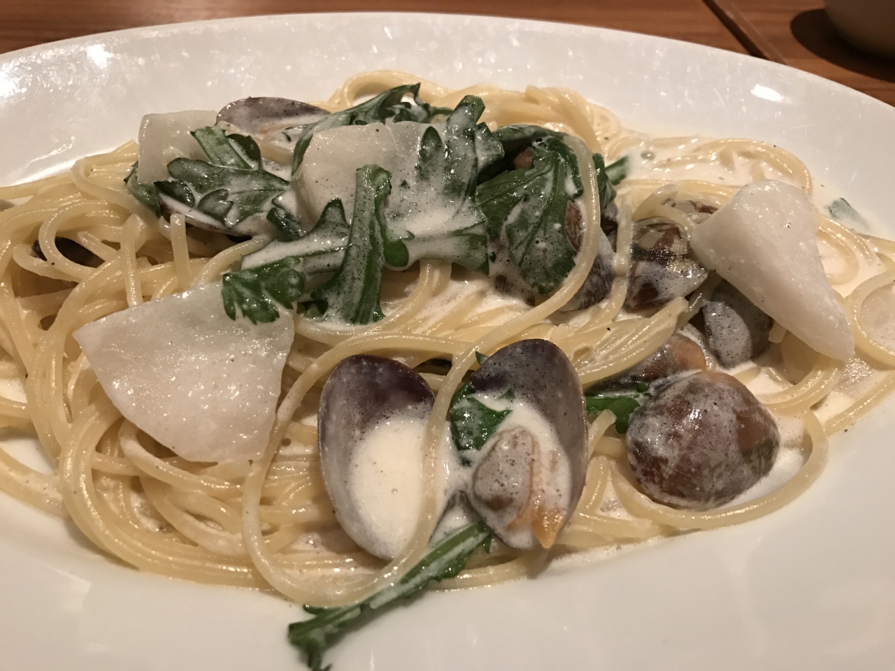 今回は週替わりのパスタランチ(アサリと菊菜、カブのクリームパスタ)をオーダーしました。