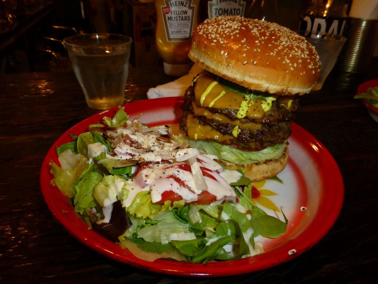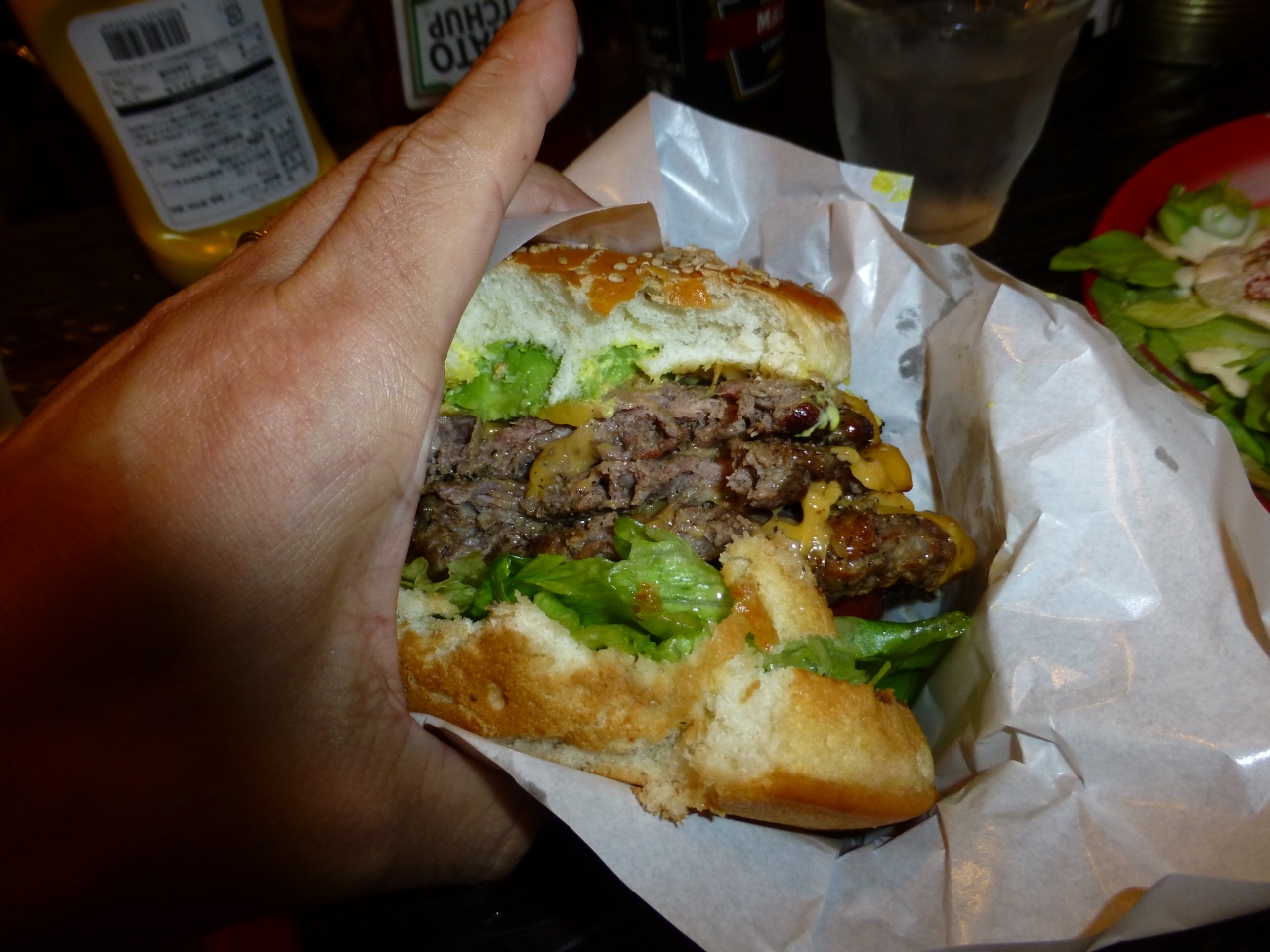 人気店ということで行って来ました。デカイ、美味い、アメリカン。日本のチェーン店にはないボリューム感。ポテトかサラダを選べました。食べる時にあごがはずれそうになりました。非日常感たっぷりで、おススメです。