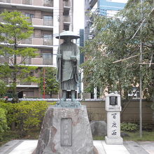 山門を入って右手、四国八十八ヶ所お砂踏みの奥にあります。石の台座の上に青銅製の大きな像が立っています。気の性かもしれませんが、ここだけとても静かな感じがしました。