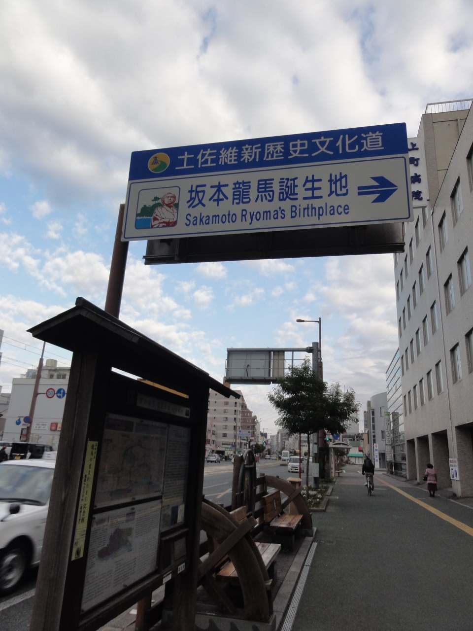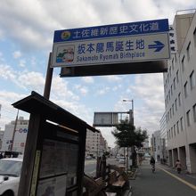 路面電車「枡形」と「上町一丁目」の間にあります。坂本龍馬生まれたまち記念館に行ったなら、ついでにという感じのところですが、生まれ育った町になくてはならない場所ですね。道路の看板探して歩き、看板の→で横を向くと石碑が建ってました。