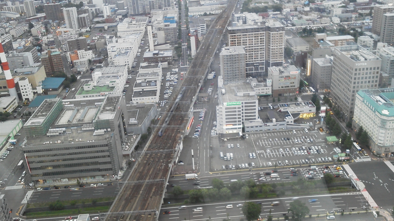 南側は札幌の中心部、北側は石狩湾、そして東と西は札幌駅を発着する色々な種類の列車を眺めることができ飽きることがありません。