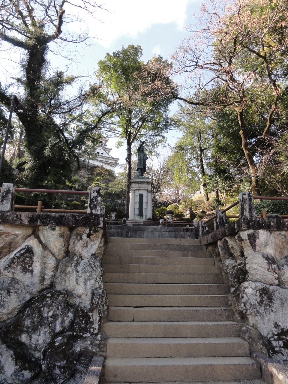高知城の追手門から入るとすぐ目に付く像が板垣退助像です。代々山内家の家臣の家で、明治維新で活躍した人です。お札になってた人で親しみもありました。高知は功績遺した人が多いのですね。あちこちに銅像が建ってる感じがします。