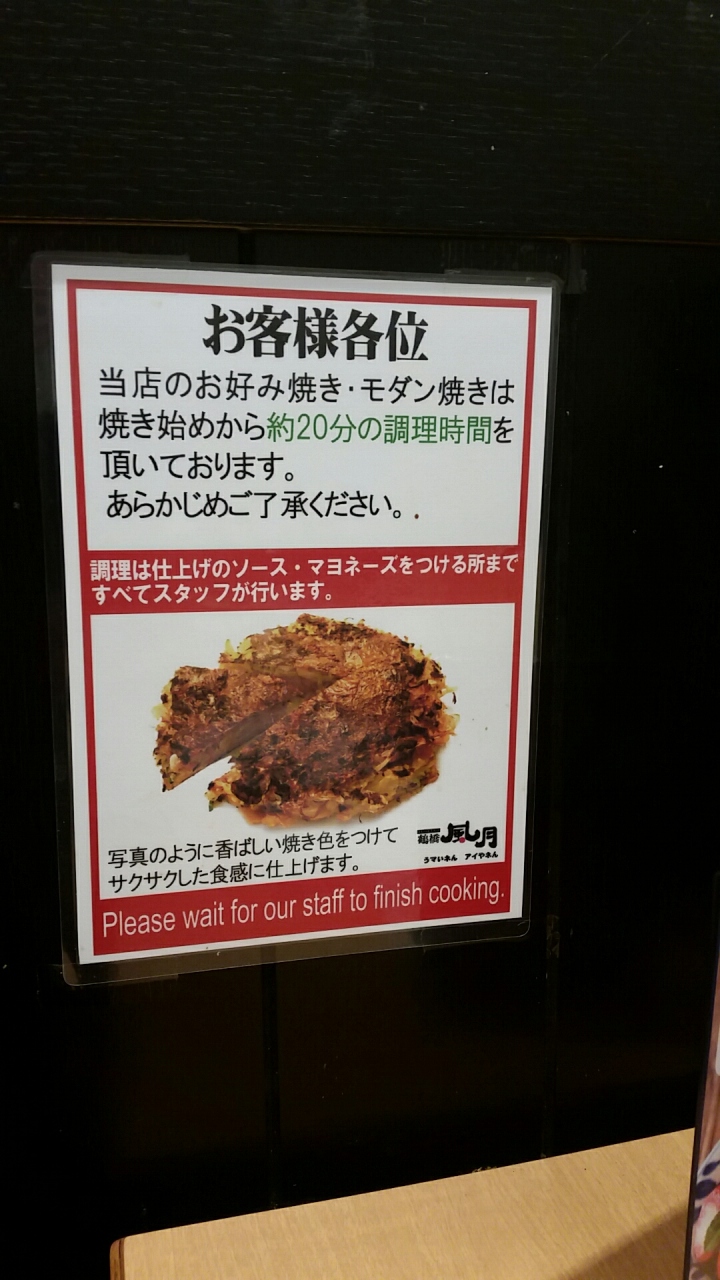 この店は、お好み焼きは、一から店員さんが焼きあげますので、お客は一切なにもする必要がありません。でも焼きあがるまで結構時間がかかるので、時間にゆとりがある時じゃないと、いらいらして待ってられません。。。
